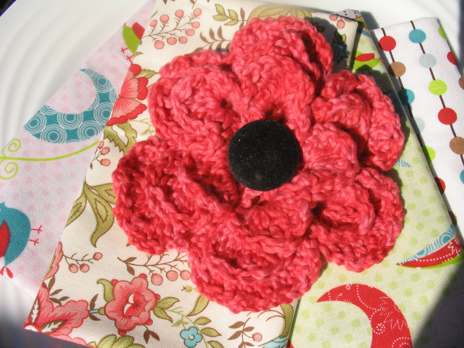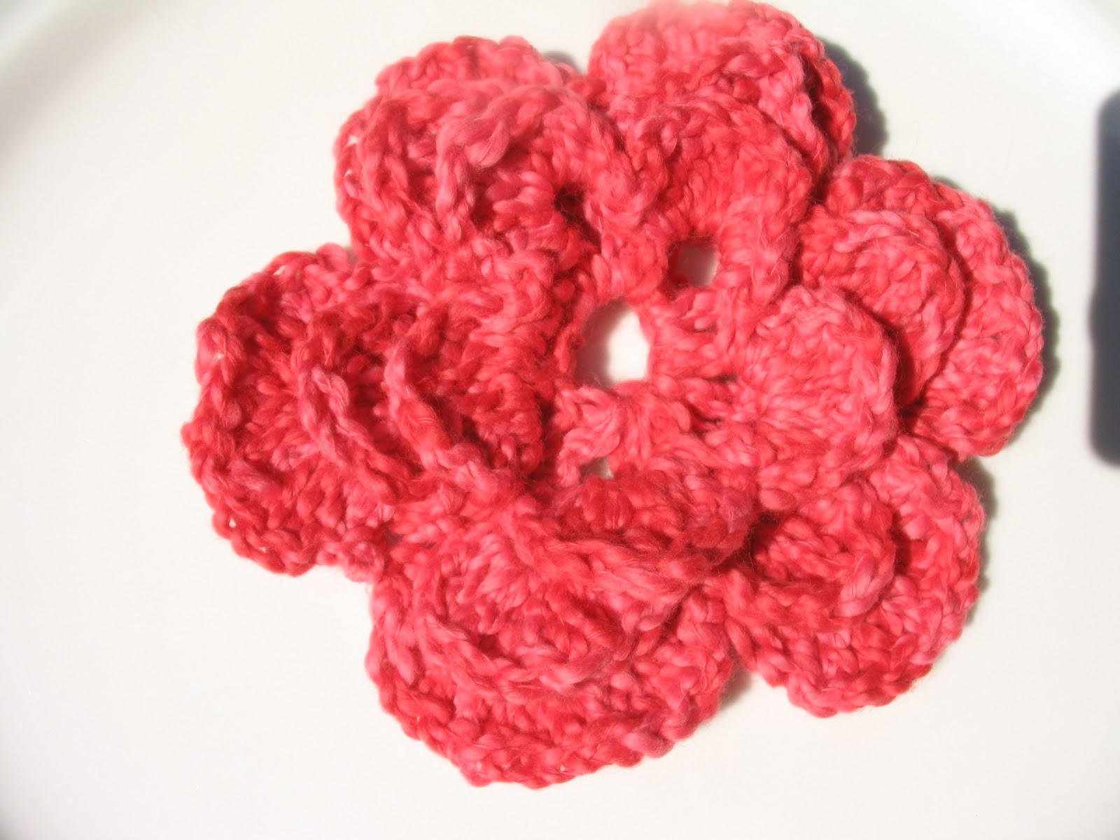 | This crochet pattern is from ammee’s idea book #4, Crochet Candy – Embellishments & More. I love the patterns in this book. This is what the flower looked like when I finished crocheting it. Most of the flower patterns in this book are shown with a button in the center, so. . . |