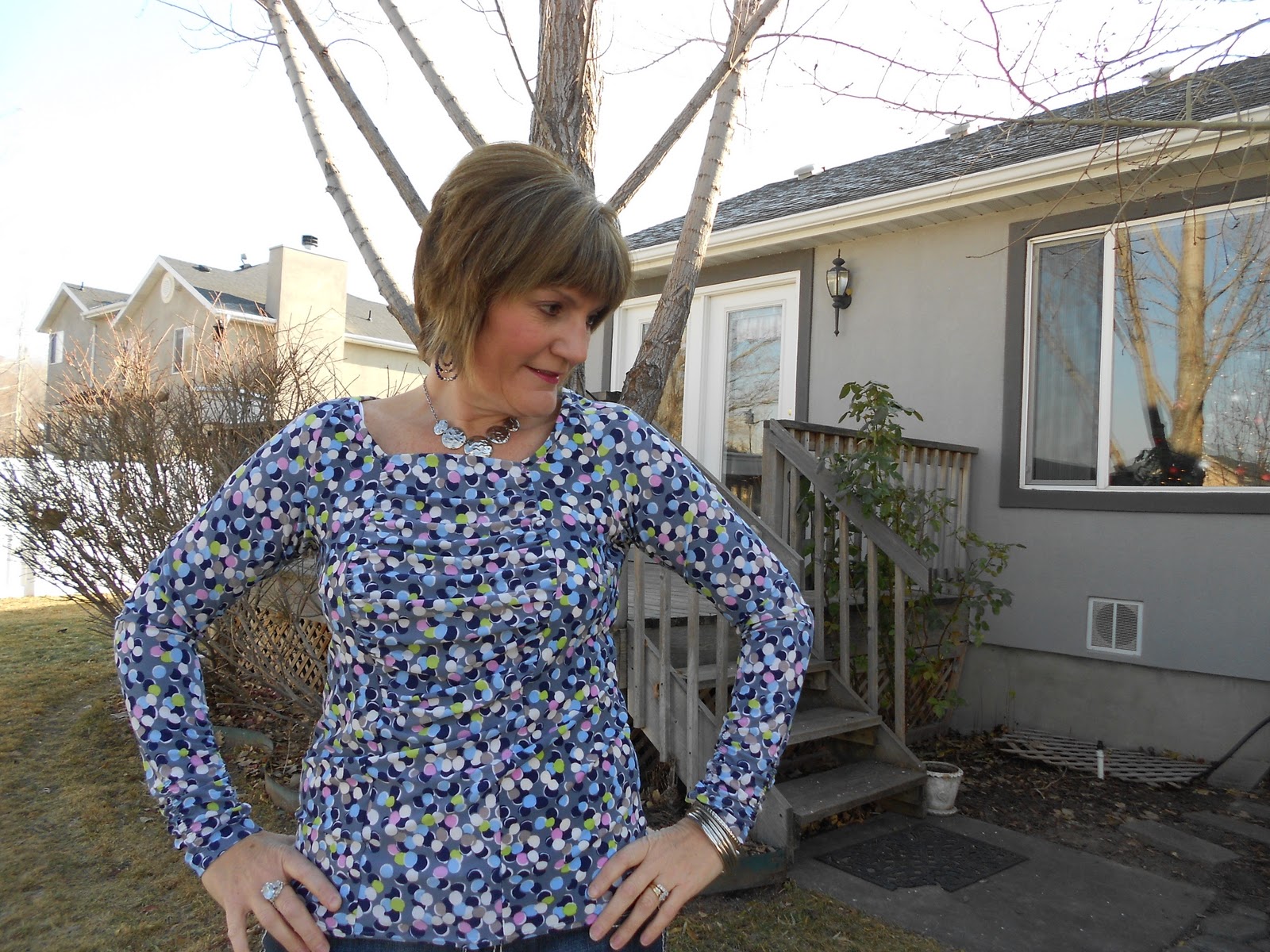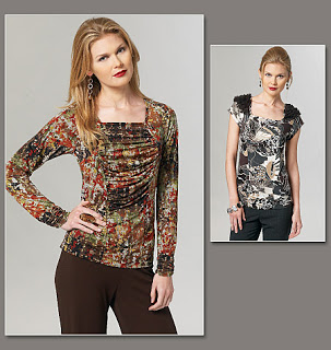 The fabric is a polyester/lycra knit that I purchased at Jo-Ann Fabrics. It’s part of a fabric collection by April Johnston (for those of you who are Project Runway fans, she was on season 8). All in all, I really like this top and I plan to wear it quite often during these cold, winter months.