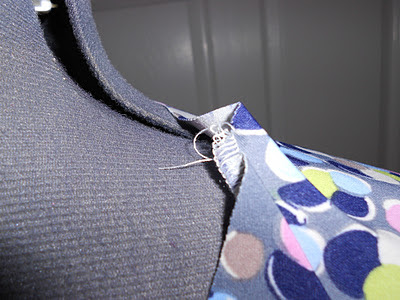 Here’s a photo of the neck before I added the band. I was concerned that it would gape like that after it was finished and I planned to take in the neck line, but I decided to wait until I got the neck band sewn on. I’m glad I waited, because the neck band made the neck line lay down nice and flat against my skin.
