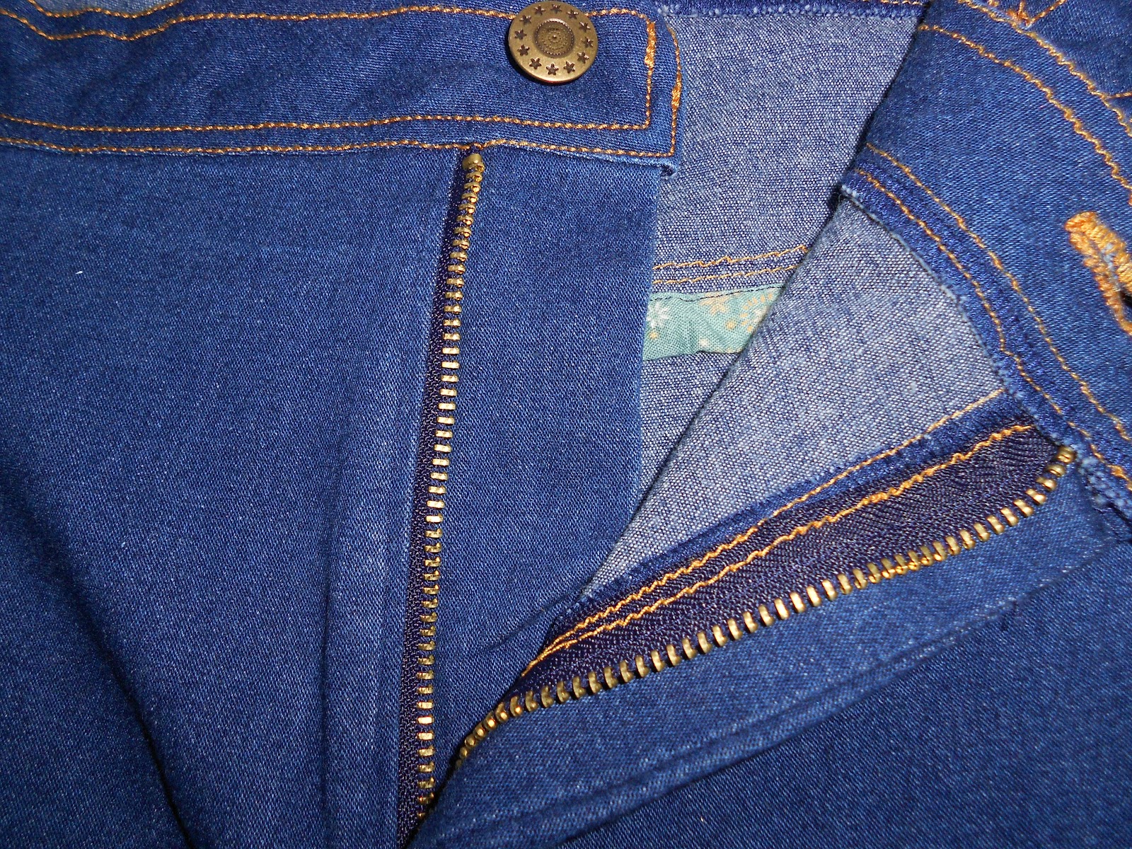 The pattern called for an 8” zipper, but I used a 6” zipper because that’s what my local store had. It was perfect. I think an 8” would have been too long for my taste. As for the rest of the closure, I used a jeans button and a rounded-end buttonhole. But a word of wisdom – when sewing the button hole, be certain to put it almost completeley against to topstitching along the vertical edge. As you can see, I was not paying attention to that little detail, and my button is too far to the left. I will have to add a hook and eye to that end to keep it flat.