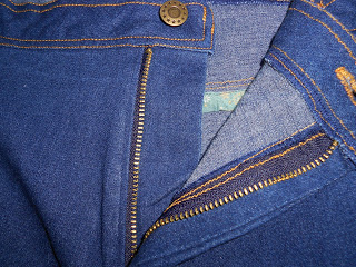 I used indigo stretch denim from Hancock Fabrics that was 96% Cotton/4% Spandex. It is a bit lightweight, but will be nice for three seasons out of the year.