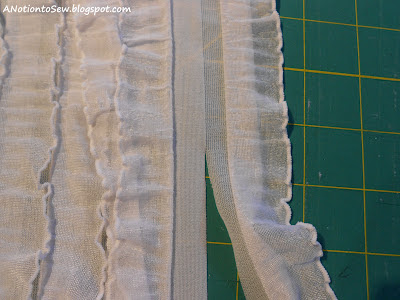 You now have a nice straight line of stitching just above those ruffles. There is also enough seam allowance left to allow room to stitch this ruffled band piece onto the dress.
