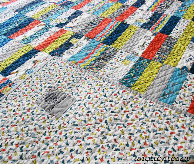 | Colorful Boy Quilt with a quick and easy pocket label |
