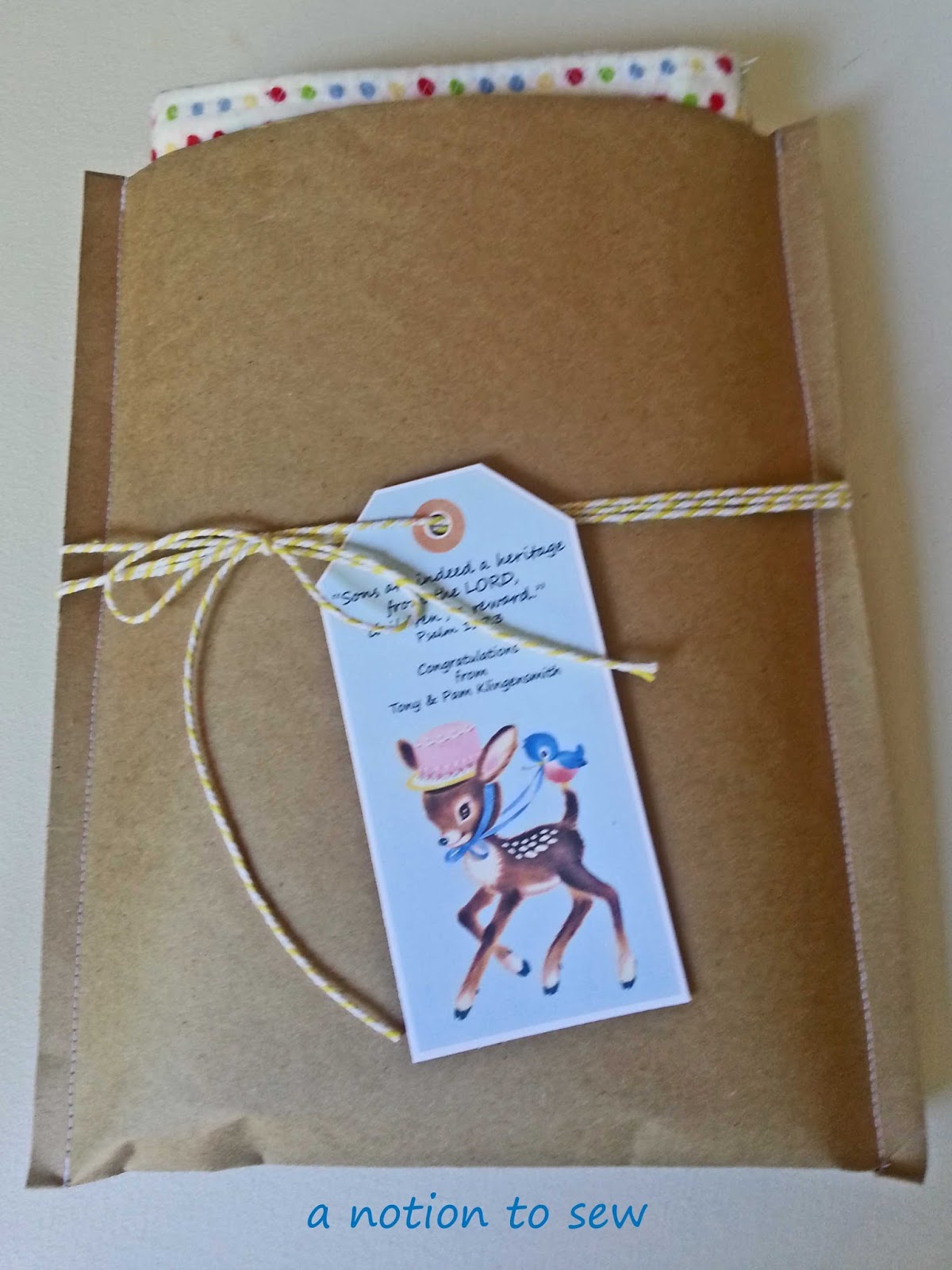 So I quickly sewed up a couple burp cloths and included a gift card for a nice little, last-minute gift.