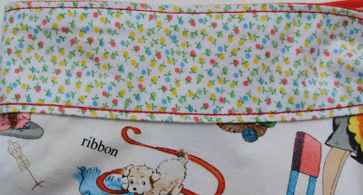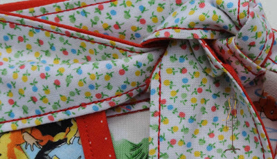 I used a solid red fabric for the back side of the waistband/tie