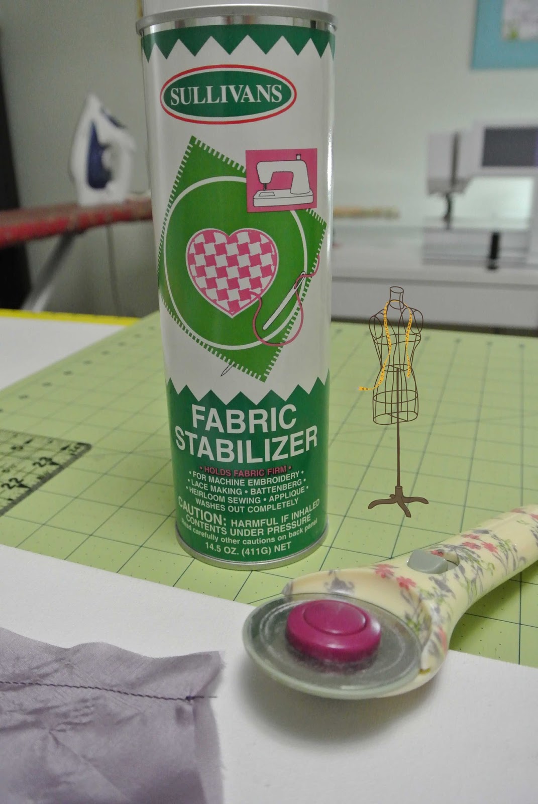 lightly spray the fabric with Sullivan’s Fabric Stabilizer