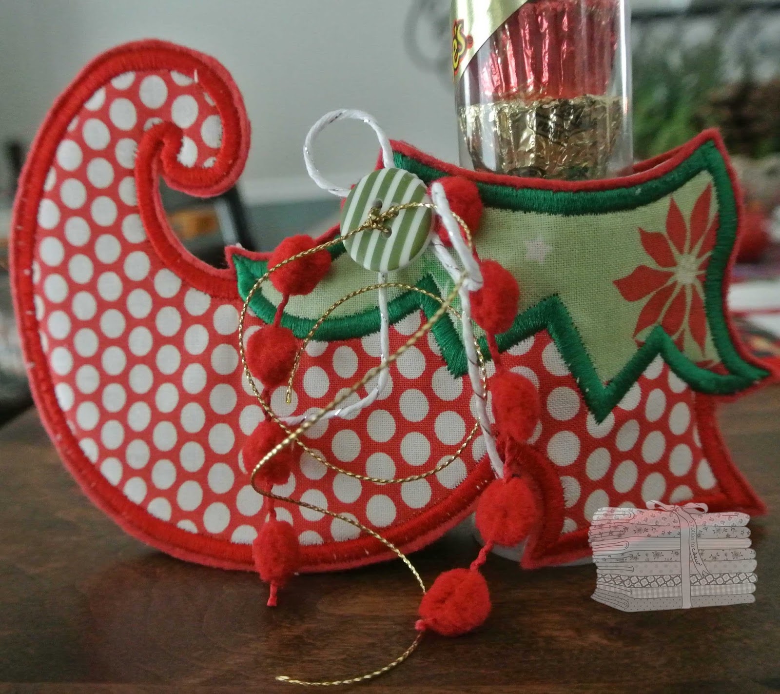 these cute, cute elf shoes were stitched using my Bernina 750 embroidery module