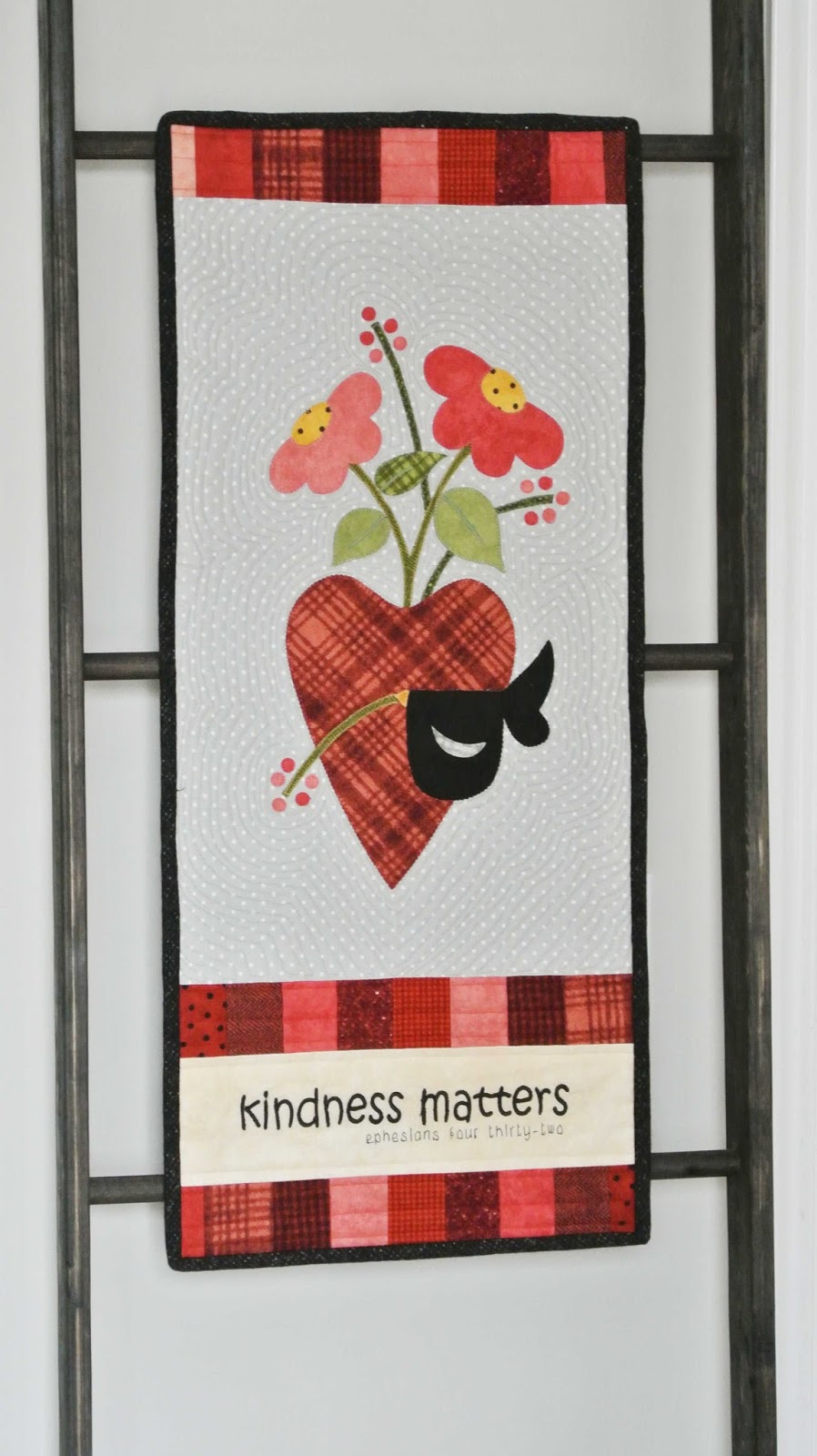 the pattern included the ‘kindness matters’ lettering to trace and stitch by hand