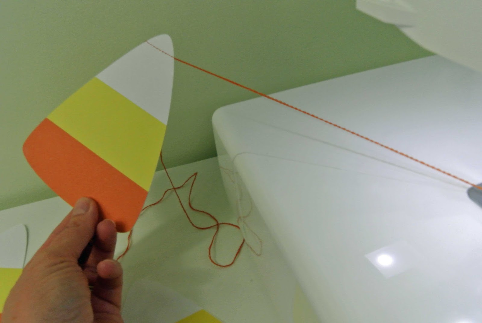 I spaced my candy corn pieces about 12-15 inches apart from one another.