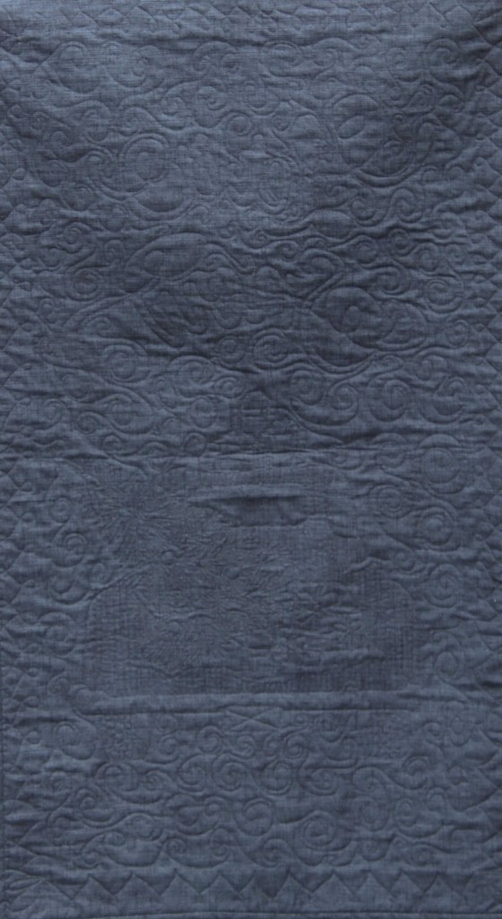 I’m okay with the batting show through, since this will be hanging on a wall, and it was, after all, a practice project. But in the future, I will be certain to use dark batting with dark fabrics.