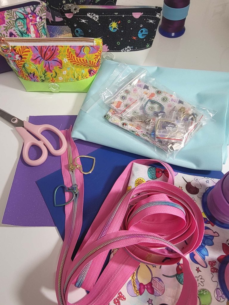 I have quite a bit of bag hardware left from when I closed my Etsy shop in 2023. I did not want to buy supplies for my bag, so I used what I had on hand. The strap slider and the triangle rings are iridescent rainbow by Emmaline Bags, and the swivel hooks are nickel finish designer profile by Emmaline Bags.