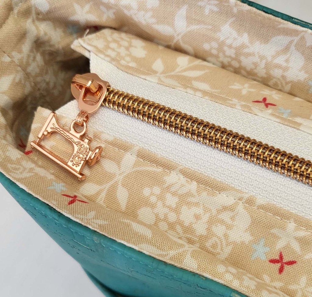 I added a rose gold sewing machine zipper pull for a cute touch.