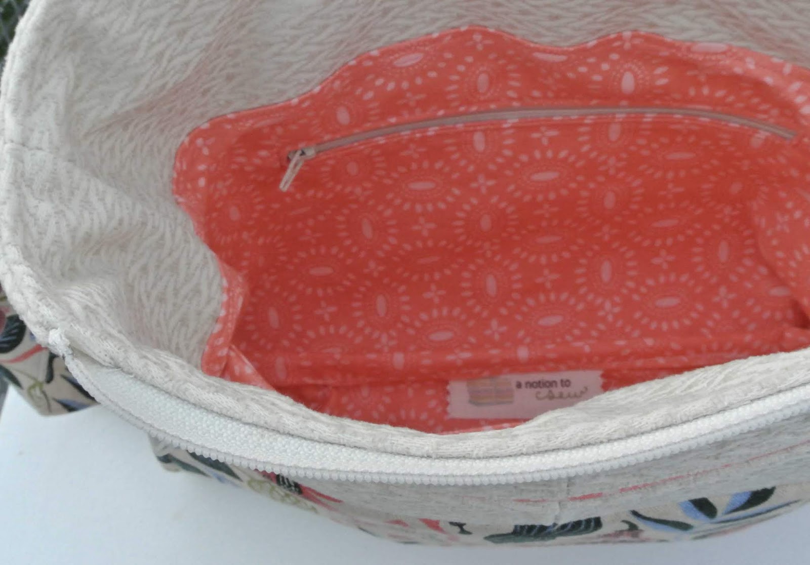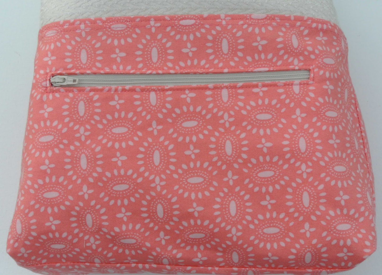 The pattern includes instructions for fabric handle tabs and zipper ends,