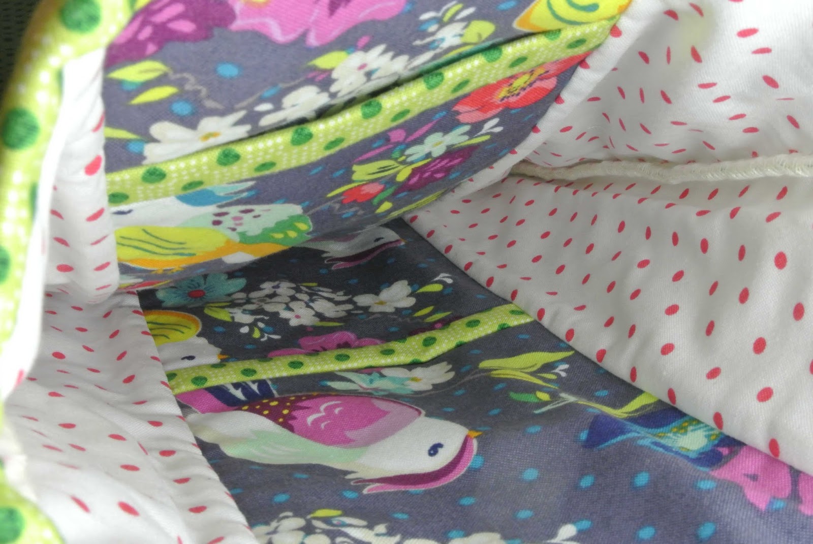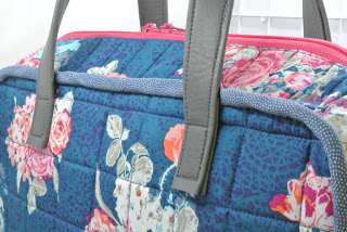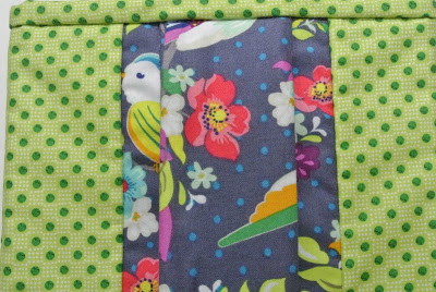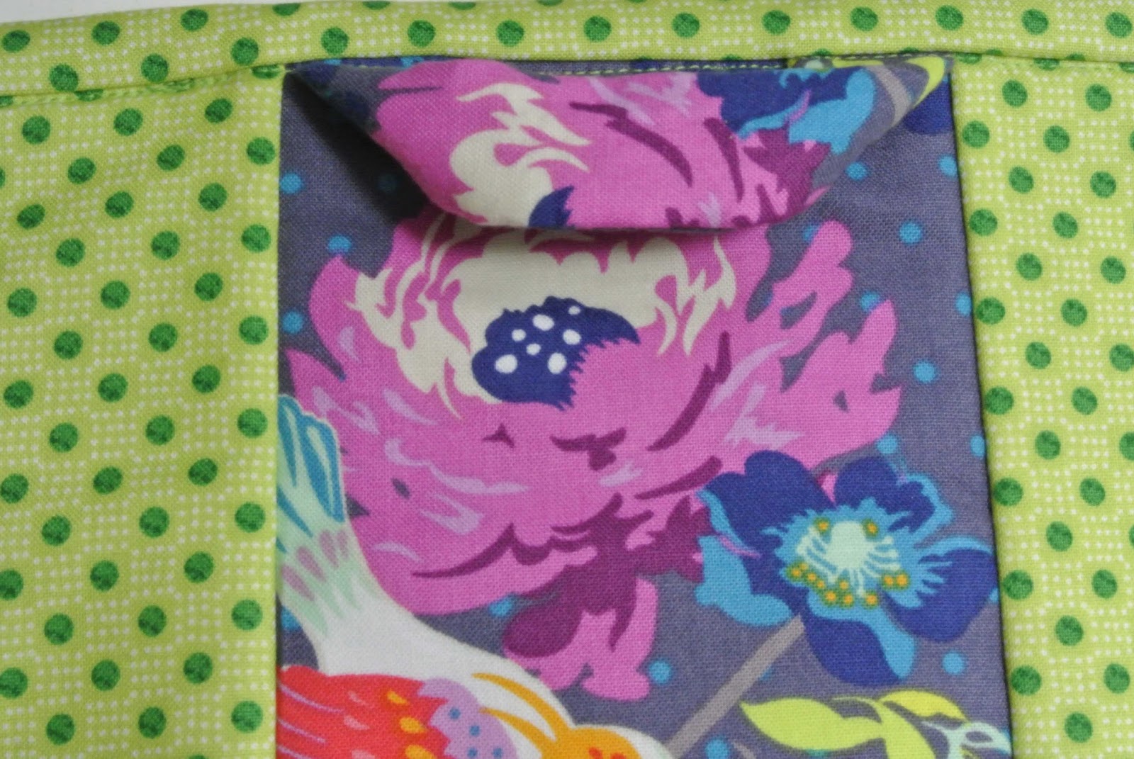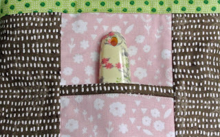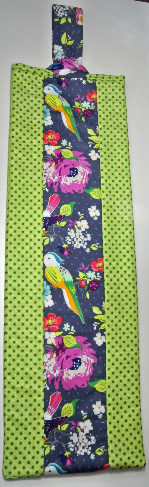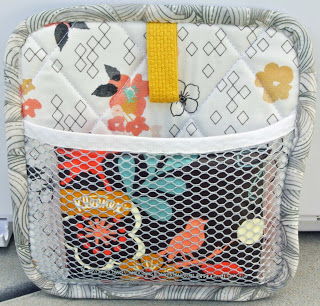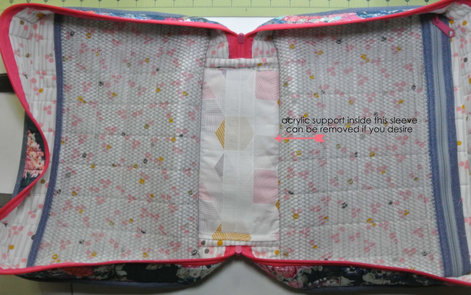 The pattern instructs attaching the handle at the other end (the spine) of the organizer