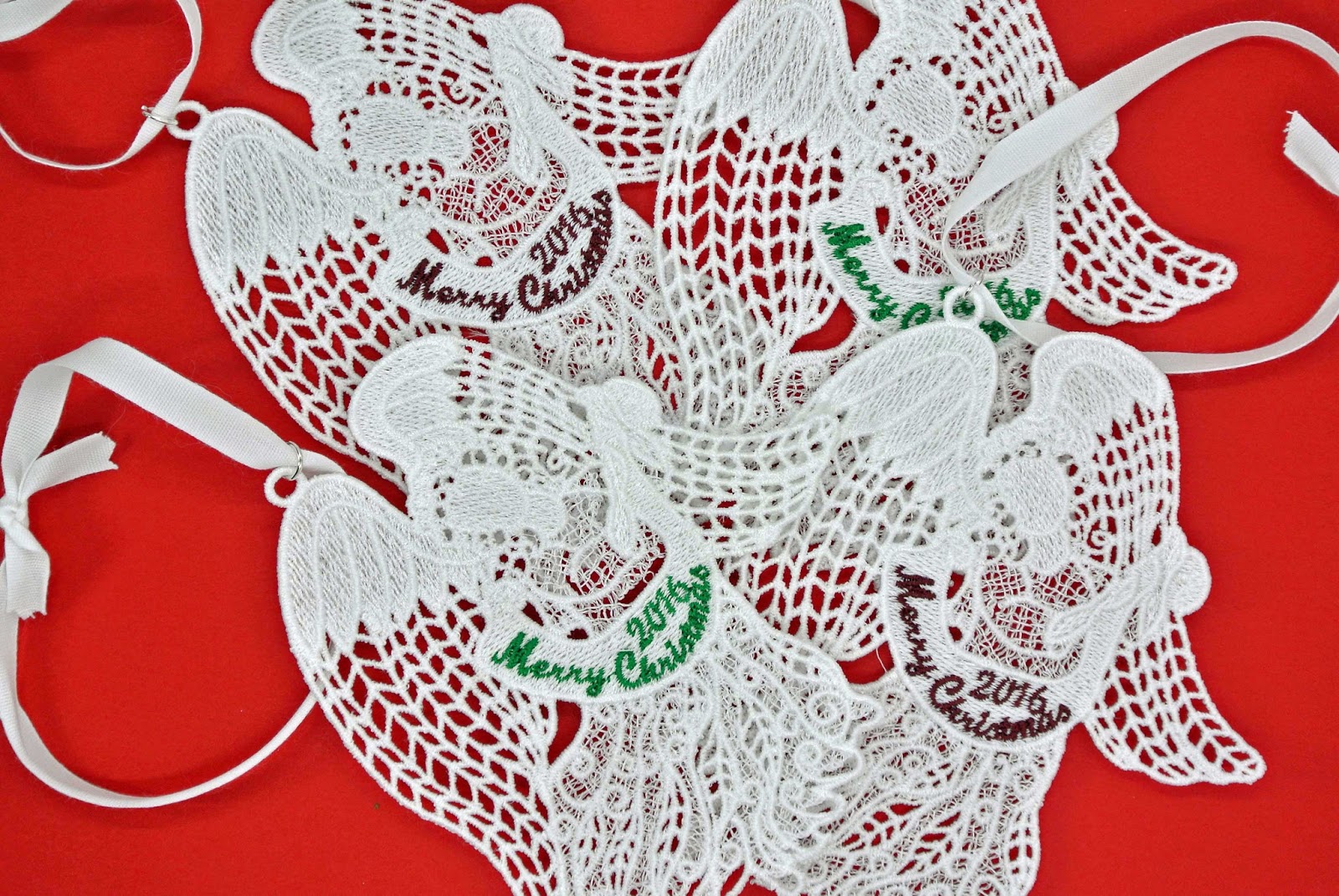 These Kimberbell embroidery hoop frame designs give my prim style tree a touch of modern Christmas whimsy