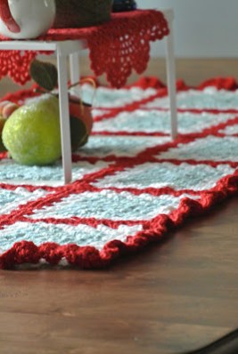 I love trivets! But my intended use for this one is not for hot pots, but rather to add a decorative touch to this vintage chair that sits in the corner of my entryway. The pattern is from the Sew4Home blog. I used fabrics and supplies I already had on hand. The fabric is leftover from this bed runner. The over sized green ric rac was purchased a couple of years ago from one of my local quilt stores. As you can see in the photo below, the trivet is a bit sparse on this chair seat, so I decided to alter the pattern a bit and make it slightly larger.