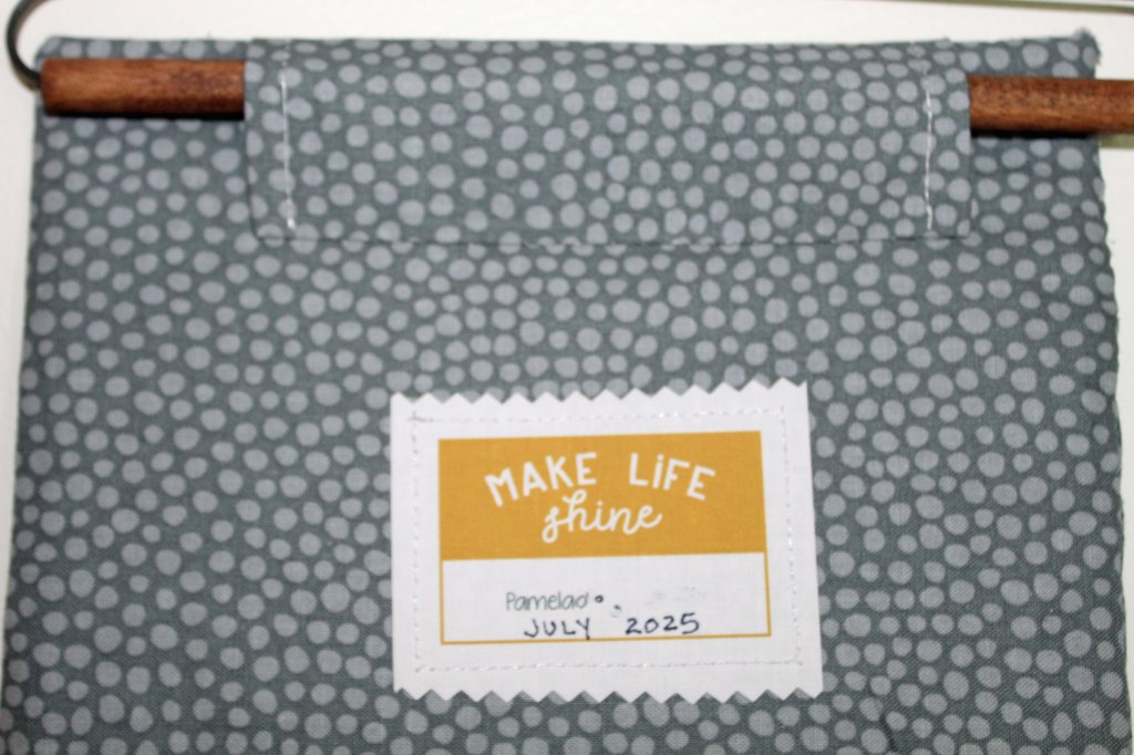 I have quite a bit of bag hardware left from when I closed my Etsy shop in 2023. I did not want to buy supplies for my bag, so I used what I had on hand. The strap slider and the triangle rings are iridescent rainbow by Emmaline Bags, and the swivel hooks are nickel finish designer profile by Emmaline Bags.