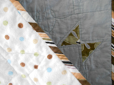 I noted in an earlier post that I planned to make a simple quilt to complete the baby ensemble for my new grandchild. He came into this world a few weeks early, so I scrambled to complete it before the baby shower this weekend.