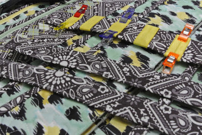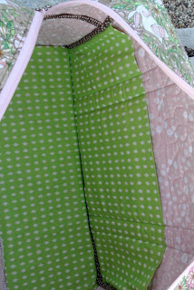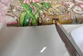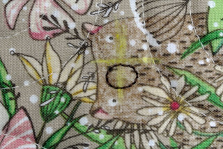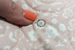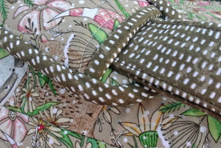 I used white batting because that is what I had on hand and it worked out okay, except there was a bit of batting show through on the back where the needle pierced the fabric: