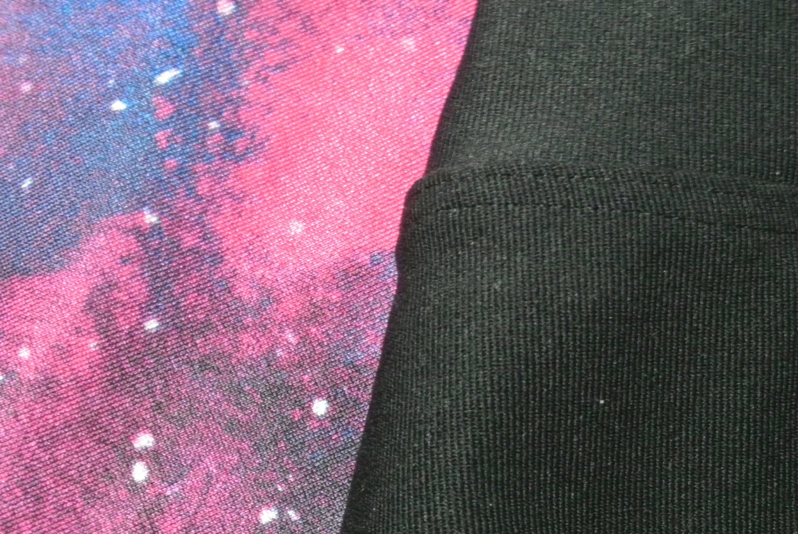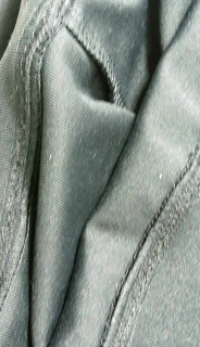 The top edge of the mesh fabric is finished off with fold over elastic.